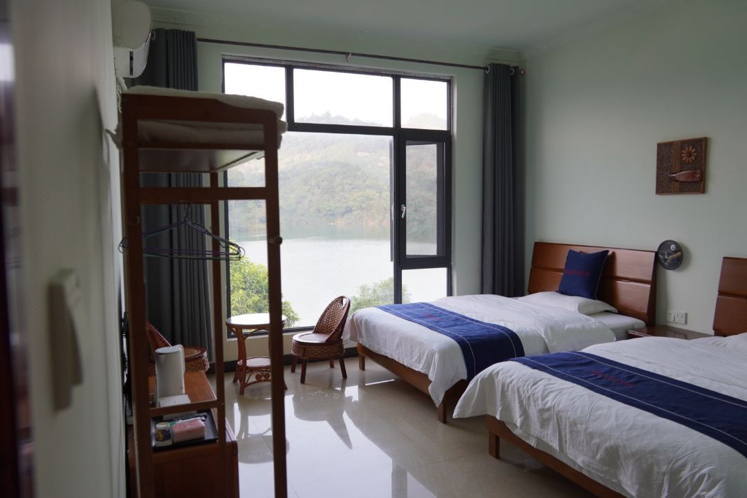 德哥民宿位于巴马赐福湖边,风景优美,湖面辽阔。千里澄江似练,翠峰如簇。王安石笔下的风景,在这里得以体现。客房视野极佳,抬眼便是让人忘却烦恼的美景,让人流年忘返。晚上在这里可以看到皎洁的月光,还有满天繁星。湖边可以钓鱼,可以喝茶,可以桌游,可以做任何你想做的事。民宿也提供餐饮,德哥的厨艺让很多食客念念不忘。这里的人们朴实随意,来到这里可以放空自己,放飞一切思绪,给心灵带来淡泊宁静!