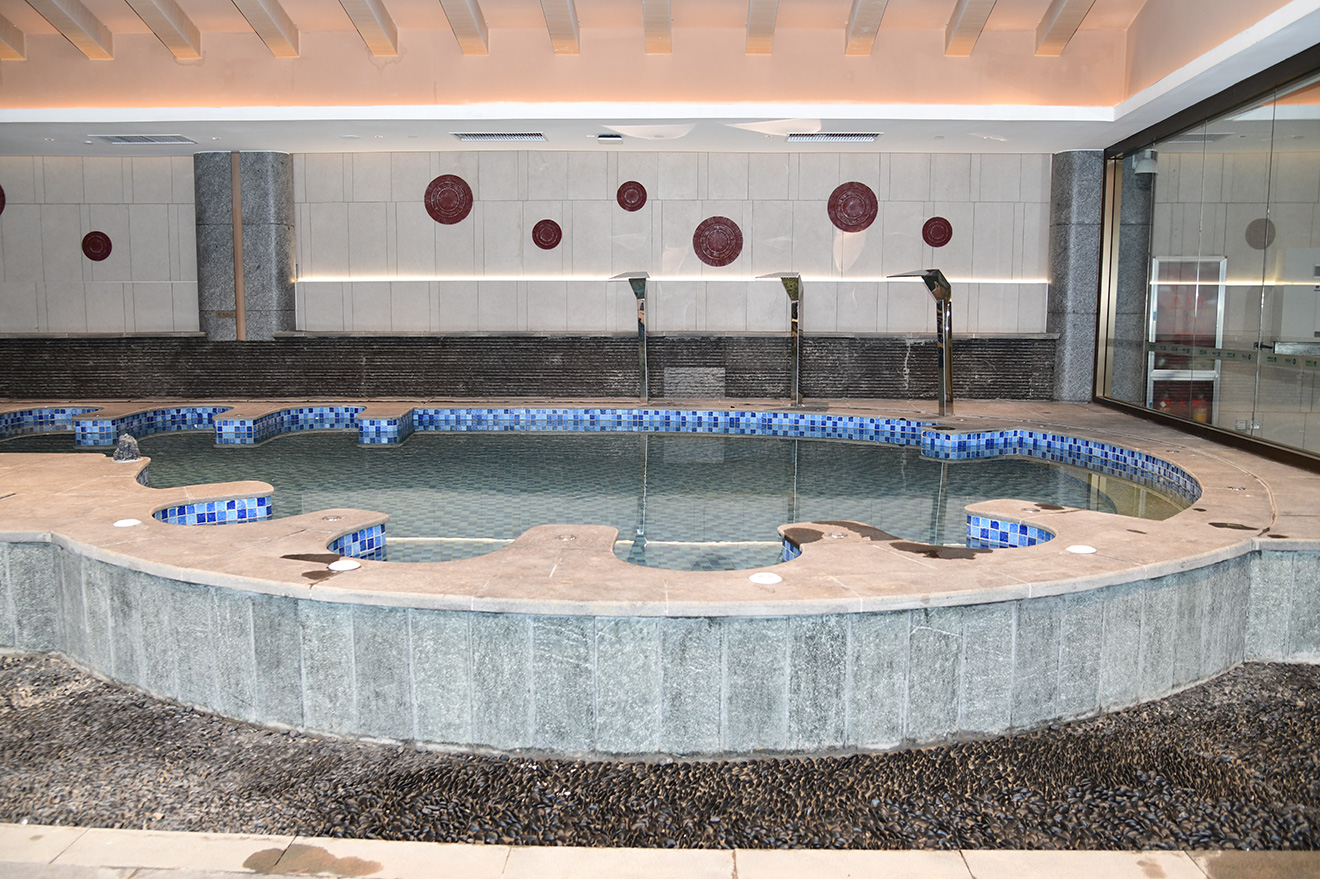 1.室内温泉泡池及休闲区: 在这里,你可以尽情享受各种不同的体验在雪花飘落的造雪屋;在药蒸房内让温热的蒸汽均匀地包裹着您的身体,也可以和家人朋友齐聚在宽敞的公共泡池一边泡温泉,一边分享生活中的趣事温馨又欢乐。 |