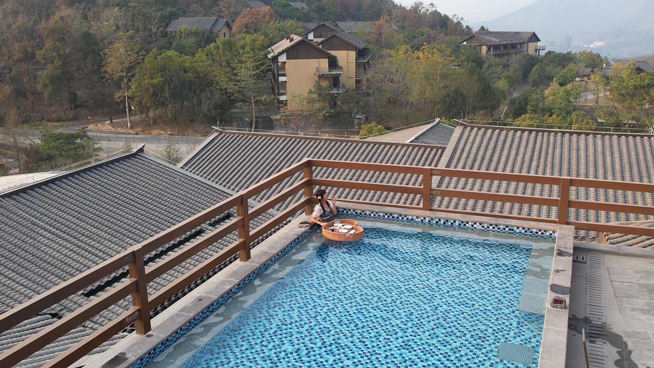 2.户外温泉泡池及休闲区: 将水、空气、地磁、阳光、土壤五大养生元素与瑶乡民族特色相融匠心打造特色温泉与游乐区,一共分为5个区域,分别为儿童戏水区、无边悬崖泡池区、闲泡池区半空休闲体验区、温泉汤屋。25 个风格迥异的户外泡池错落分布,您可舒缓身心享受温泉水疗,尽览自然馈赠。 |
